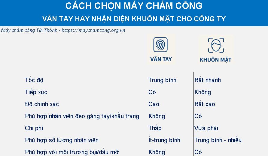| Tiêu chí | Vân tay | Khuôn mặt |