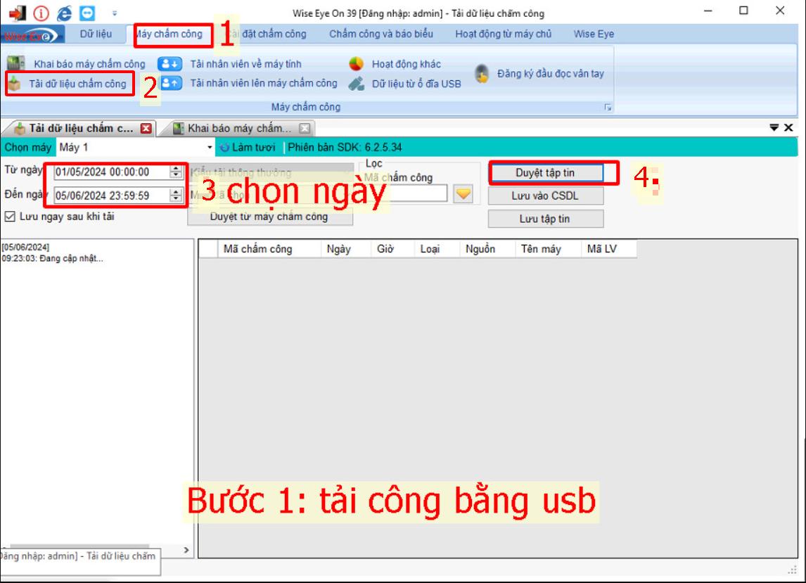 Sử dụng usb để xuất báo cáo chấm công trên phần mềm Wise Eye On39.
